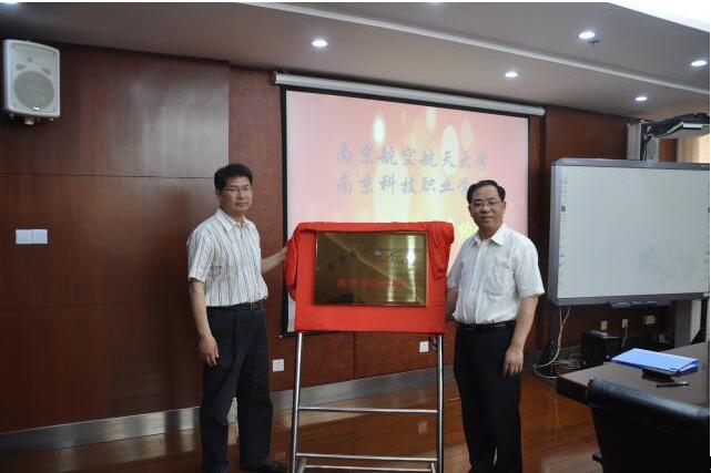 2016年6月17日下午,南京航空航天大学“南京科院教学实践基地”揭牌仪式在南京科技职业学院举行。材料科学与技术学院党委书记周克印、副院长梁文萍、应化系副主任祁欣,南京科技职业学院党委书记李子全、副院长杨青、实训基地主任卢忠东、主任助理蔡源及相关工作人员出席了仪式。