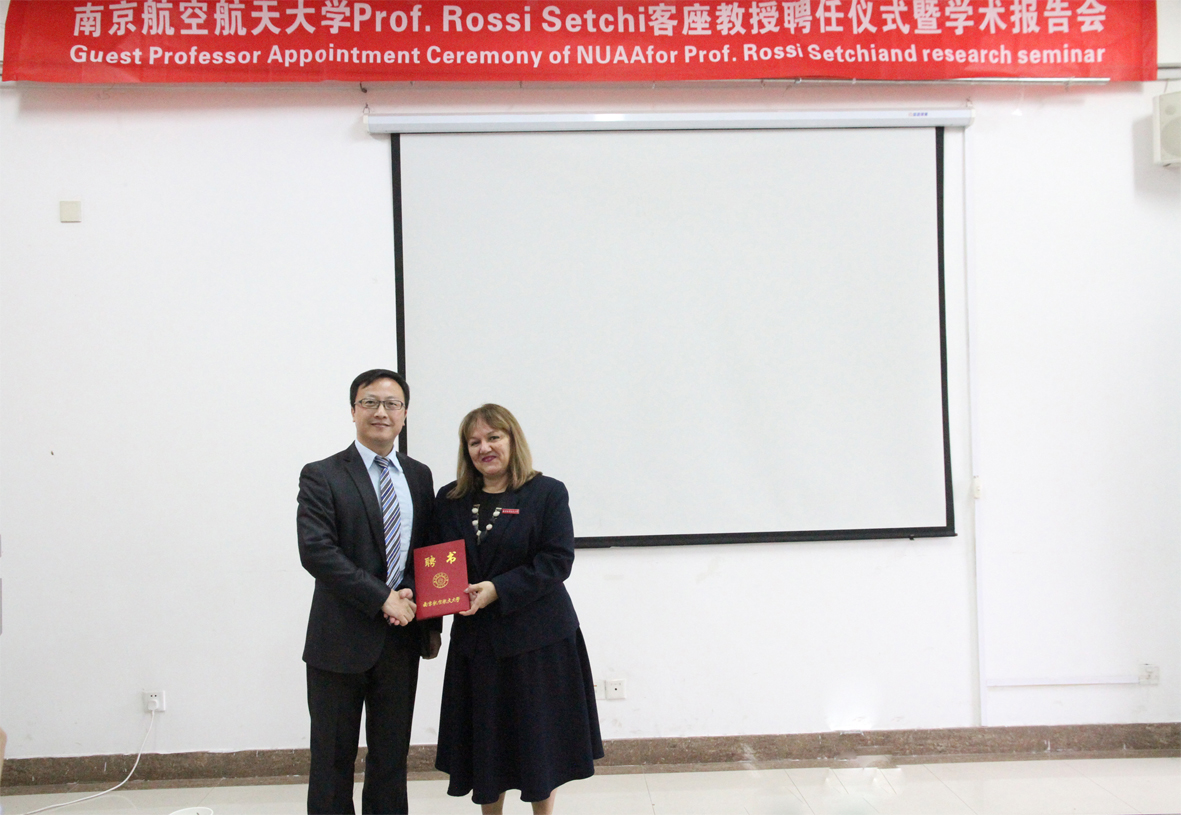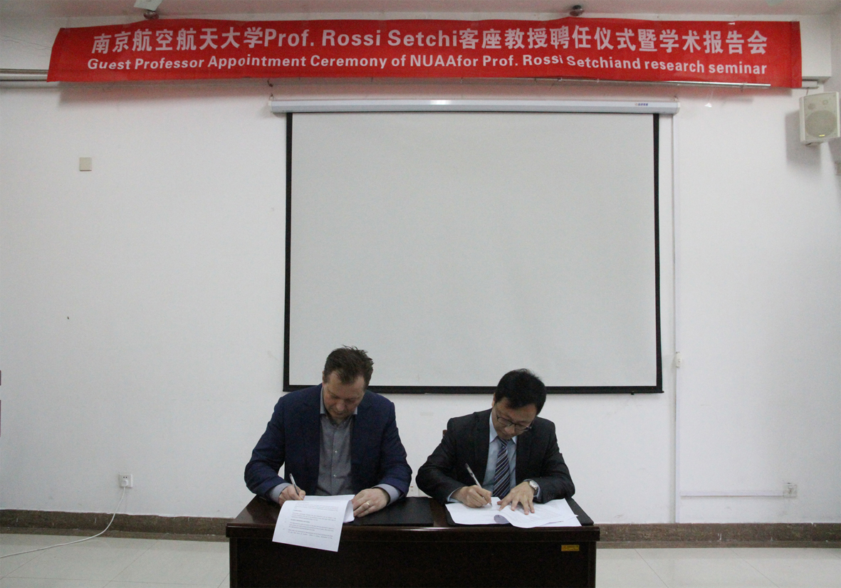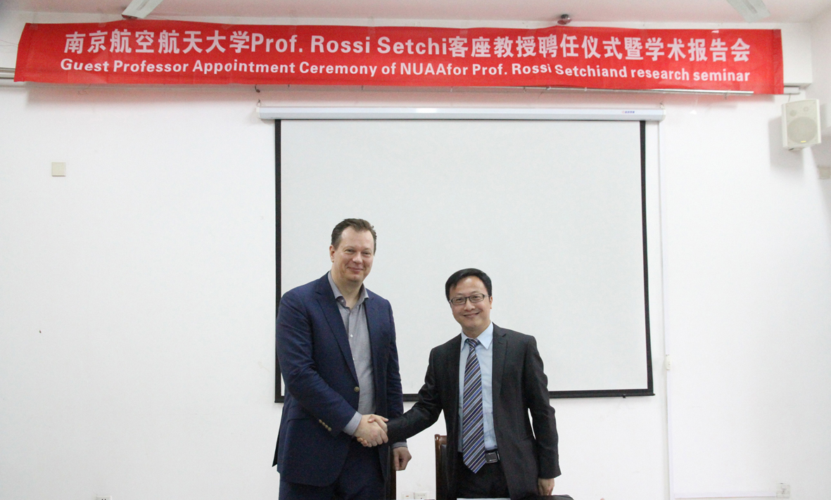 上午十点,卡迪夫大学国际事务处主任Johannes Benedikt教授与我校国际合作处处长赖际舟教授签订了《卡迪夫大学-南京航空航天大学校际合作协议》,为两校未来的深度合作奠定了坚实的基础。签订仪式后,举行了Rossi Setchi教授南航客座教授聘任仪式,赖际舟教授首先对Rossi Setchi教授的到来表示热烈欢迎,向我校师生介绍了Setchi教授的学术经历和学术成就,为Setchi教授颁发了我校兼职教授聘任证书并佩戴了南航校徽。Rossi Setchi教授表达了对南航的感谢之情,同时希望进一步拓展两校在增材制造及智能制造、先进材料成型加工、机器人、无损检测等学科领域的深入合作。材料科学与技术学院院长姚正军教授、党委书记周克印教授、院长助理顾冬冬教授、材料系副主任占小红副教授等出席了本次校际合作协议签署仪式及客座教授授予仪式。