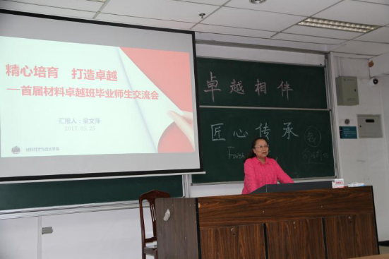 最后,材料科学与工程“卓越工程师计划”以及《材料工程专题》《航空材料进展》企业课程的负责人梁文萍教授给大家做了《精心培育 打造卓越》的报告,就卓越计划人才培养目标要求、实习基地建设、行业教师聘请、企业课程的开发与建设、企业课程授课质量与反馈、卓越班培养情况这六大方面的内容对首届卓越班的培育过程进行了精心的讲述。其中包括专门为卓越班建立了六大实习基地以提高学生们的实践能力;聘请了18位行业导师,开设五门企业课程,在每门企业课程结束后开展反馈交流会并获得学生们的一致好评。通过每位导师的授课,潜移默化地增强学生们的责任感、使命感与荣誉感,提高了学生们对专业的认知与见识。首届卓越班获得“江苏省先进班集体”等多项集体荣誉,每位学子在保研、考研、出国与工作等方面都取得了傲人的成绩!梁文萍教授以此来鼓励后续卓越班们的同学们传承这份卓越!表达了对同学们的学业、事业的祝愿和期盼。“卓越相伴·匠心传承”师生交流会到此结束。