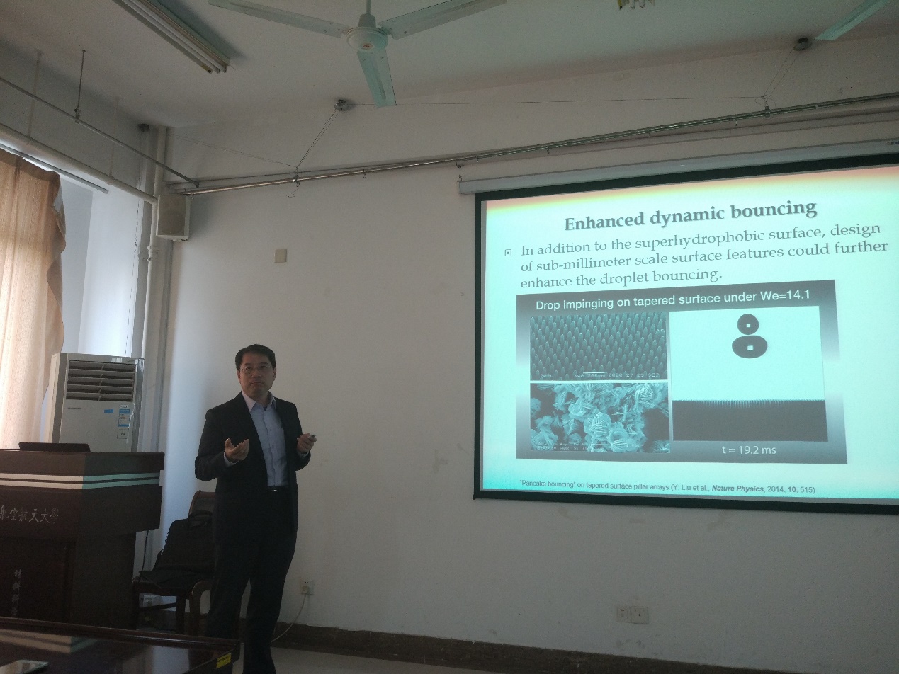 应我校材料科学与技术学院陶杰教授邀请,新加坡南洋理工大学Chen Zhong教授于2018年3月9日来我校进行学术交流访问,并为我校师生做了题为“Icephobic Coatings: current status and challenges”的学术报告。此次学术活动由南京航空航天大学陶杰教授课题组承办,报告会由材料科学与技术学院陶杰教授主持,共有40余位老师和同学参加并聆听了本次报告。