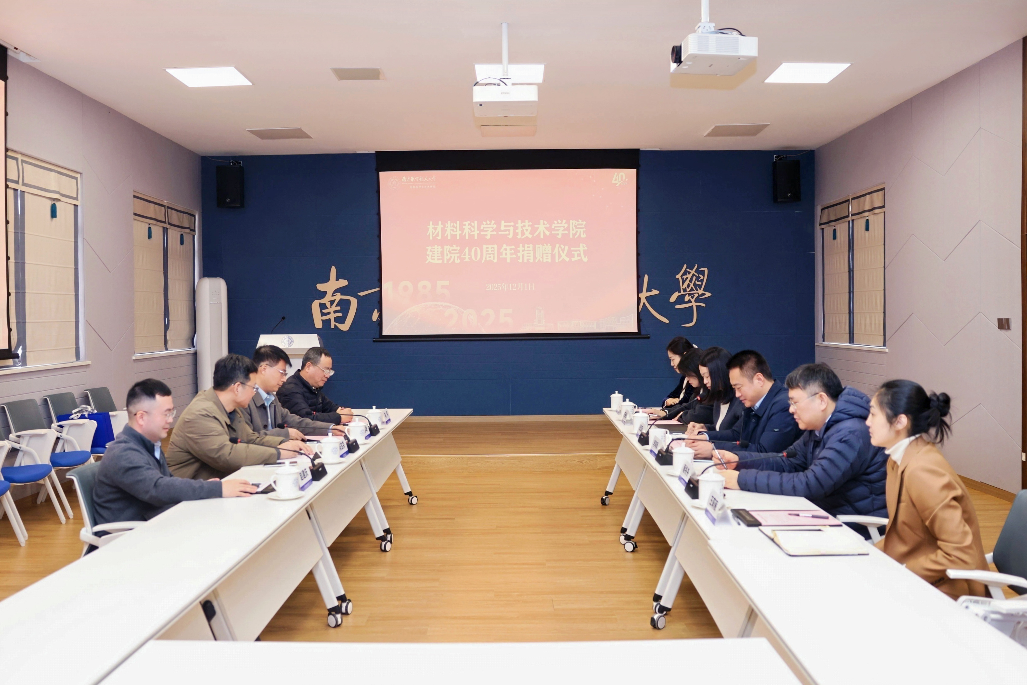 12月1日,材料科学与技术学院建院40周年捐赠仪式在明故宫校区校友之家举行。1991级院友、江苏新丰纸业有限公司董事长陈宝宗,2002级院友、江苏众钠能源科技有限公司首席技术官赵建庆,1983级院友、南京航庆淬火科技有限公司总经理、学院退休教师陈明,材料学院陈照峰教授等参与院庆捐赠的部分校友企业代表齐聚一堂。发展联络部部长、教育发展基金会秘书长李和新,材料学院党委书记张亚丽、院长顾冬冬、副书记庄晓舒等出席了活动。
